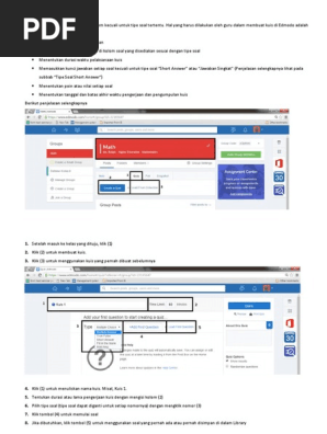 Mengerjakan latihan/ujian daring penggunaan fitur quiz ditandai dengan tombol take quizyang merupakan pintu masuk untuk mengerjakan soal. Sebelum siswa mendaftar dan mendapatkan akun di edmodo, mereka harus dibekali atau mempunyai 6 digit kode grup (dapat grup. Warna hijau, artinya siswa sudah menjawab dan edmodo sudah mengkoreksi, sehingga skor nya sudah bisa dilihat 2. Pada video berikut, ditayangkan cara untuk mengoreksi jawaban siswa, disana terdapat 3 warna pembeda pada nomor soal dari jawaban siswa, antara lain : Doc soal latihan simulasi digital x multimedia 1 alex.