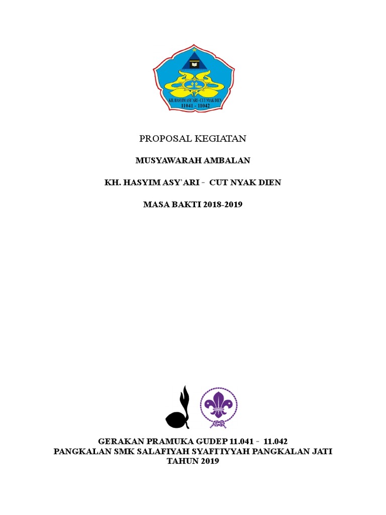 Semua alat kelengkapan tersebut saling terkait dan menjadi media pendidikan partisipatif bagi pramuka penegak di ambalannya. Proposal kegiatan pelantikan warga ambalan a. Keriyanto selaku kamabigus smk negeri 1 punggelan. View 1.3 proposal ambalan 2018.docx from religious misc at sman 3 pekanbaru. Walidah smk muhammadiyah 03 weleri, maka kami bermaksud mengadakan kegiatan (musyawarah ambalan) bagi kelas 1 dan kelas 2. Selanjutnya kegiatan ini di beri nama : 10.2 bermusyawa rah membuat jadwal latihan lanjut * bermusyawarah membuat jadwal latihan. Dimana diharapkan program kerja ambalan dapat di ikuti oleh gugus depan dilaksanakan secara berjenjang dan berkesinambungan. Rancangan kerja ini harus menjelaskan secara detil apa saja yang hendak dicapai dan dilakukan. Salah satu media untuk mendukung berjalannya sidang musyawarah adalah draf sidang. Juga merupakan program kerja tahunan yang telah ditetapkan melalui musyawarah ambalan. Disiplin, setia, dan bersahaja menuju insan berakhlak mulia. Demikian proposal musyawarah dan rapat kerja kopi feb unpad 2015 ini kami buat.